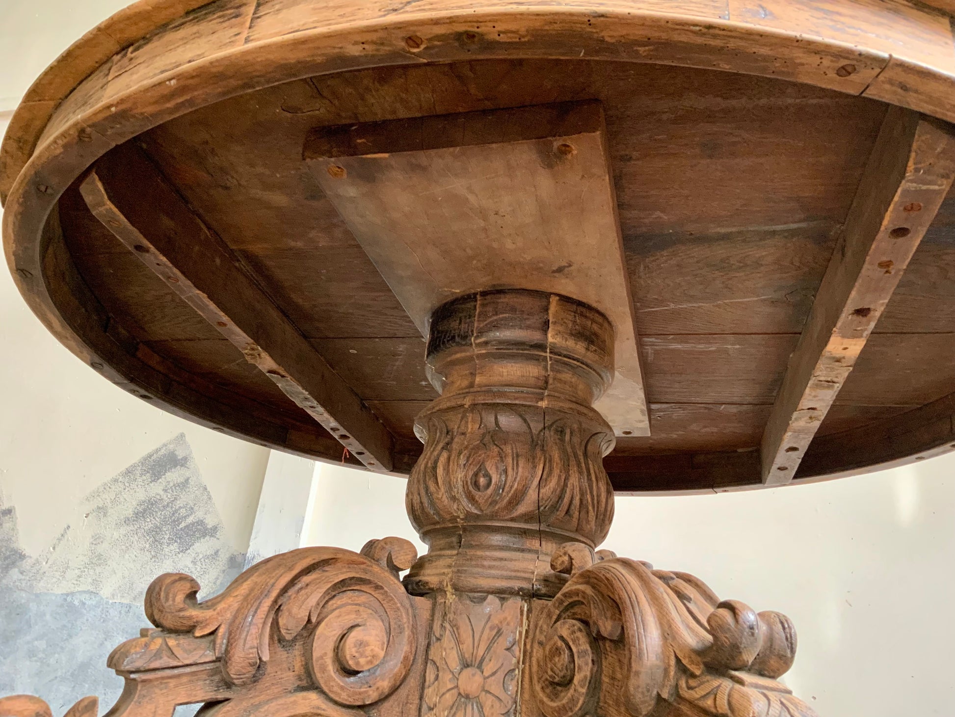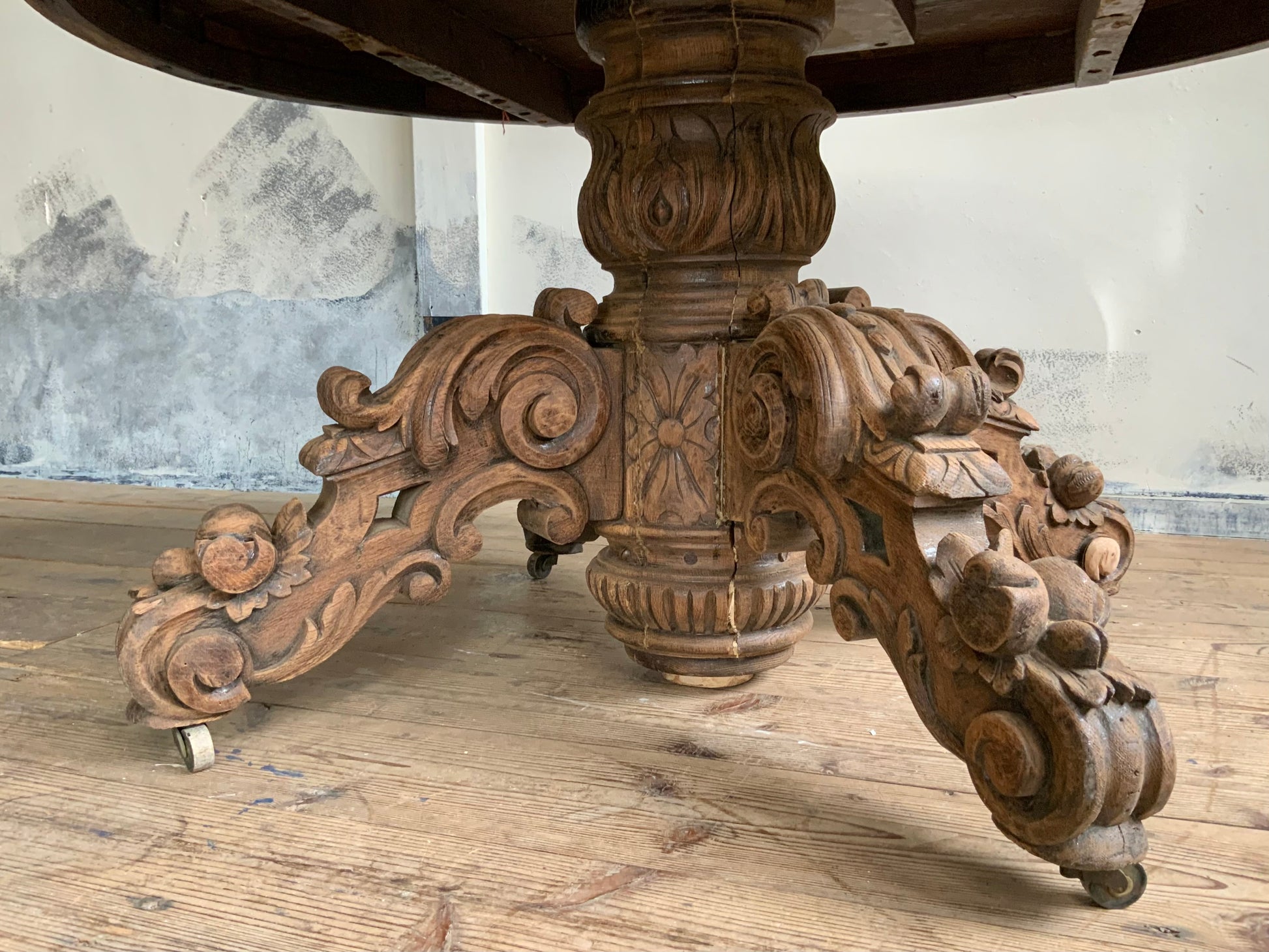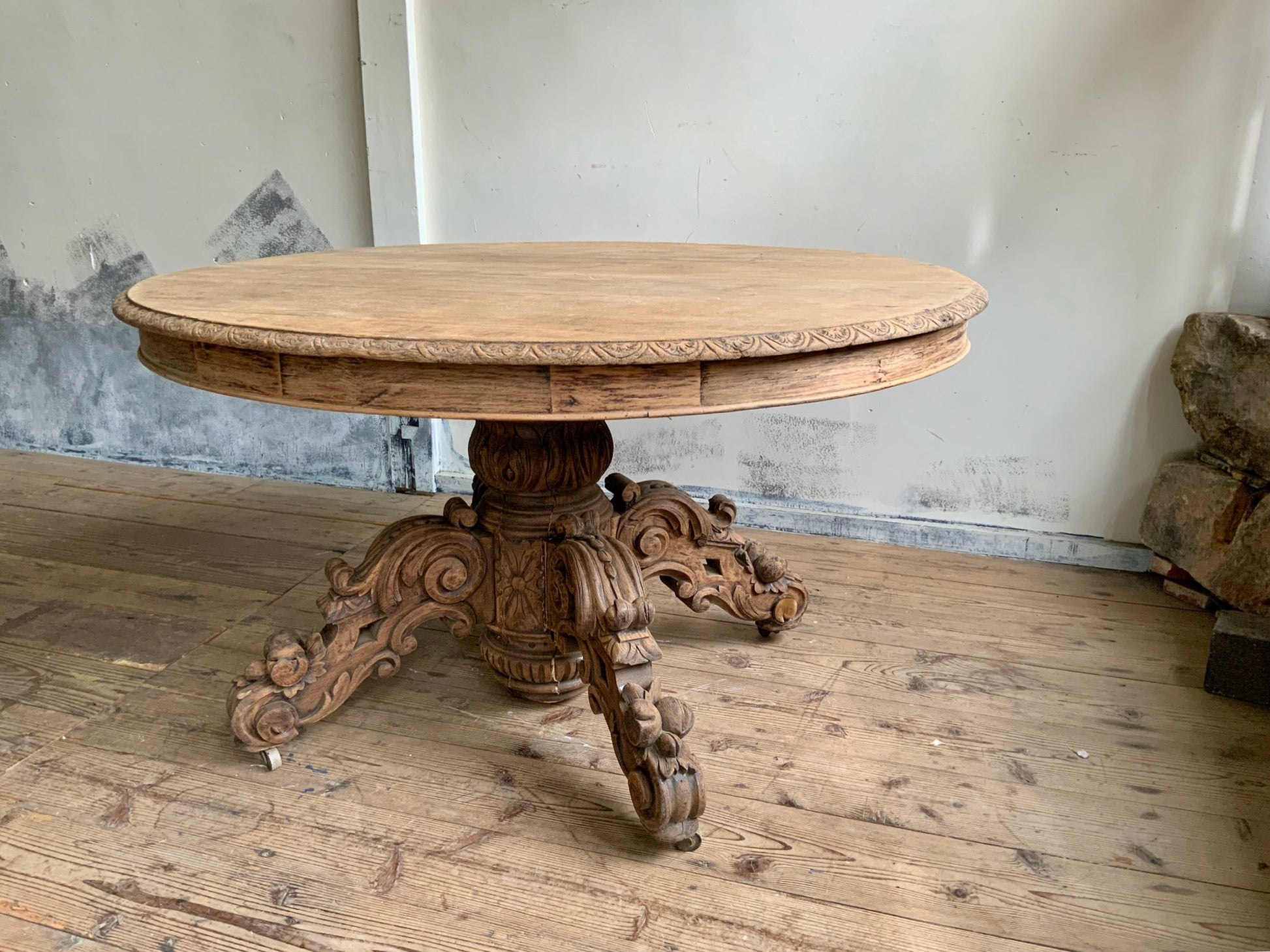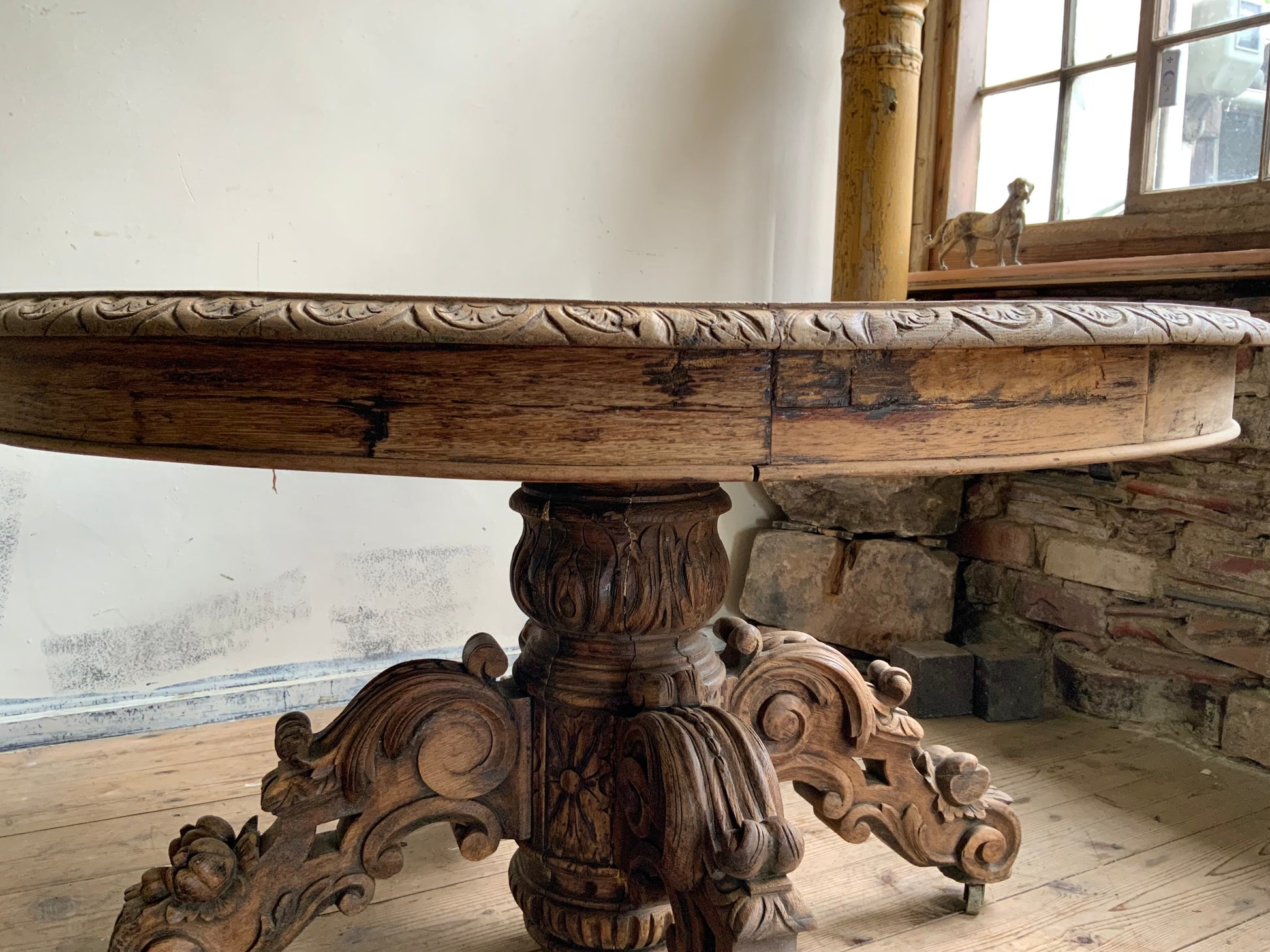 デコラティブなベース脚にオーバルの天板、華やかな雰囲気がフランスらしい一品です。