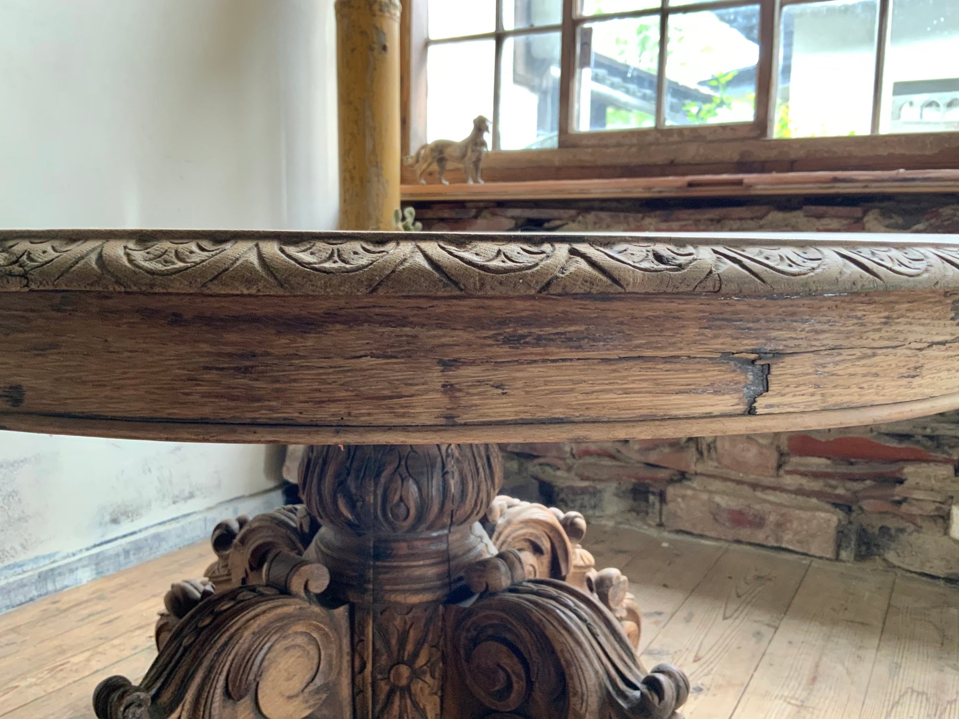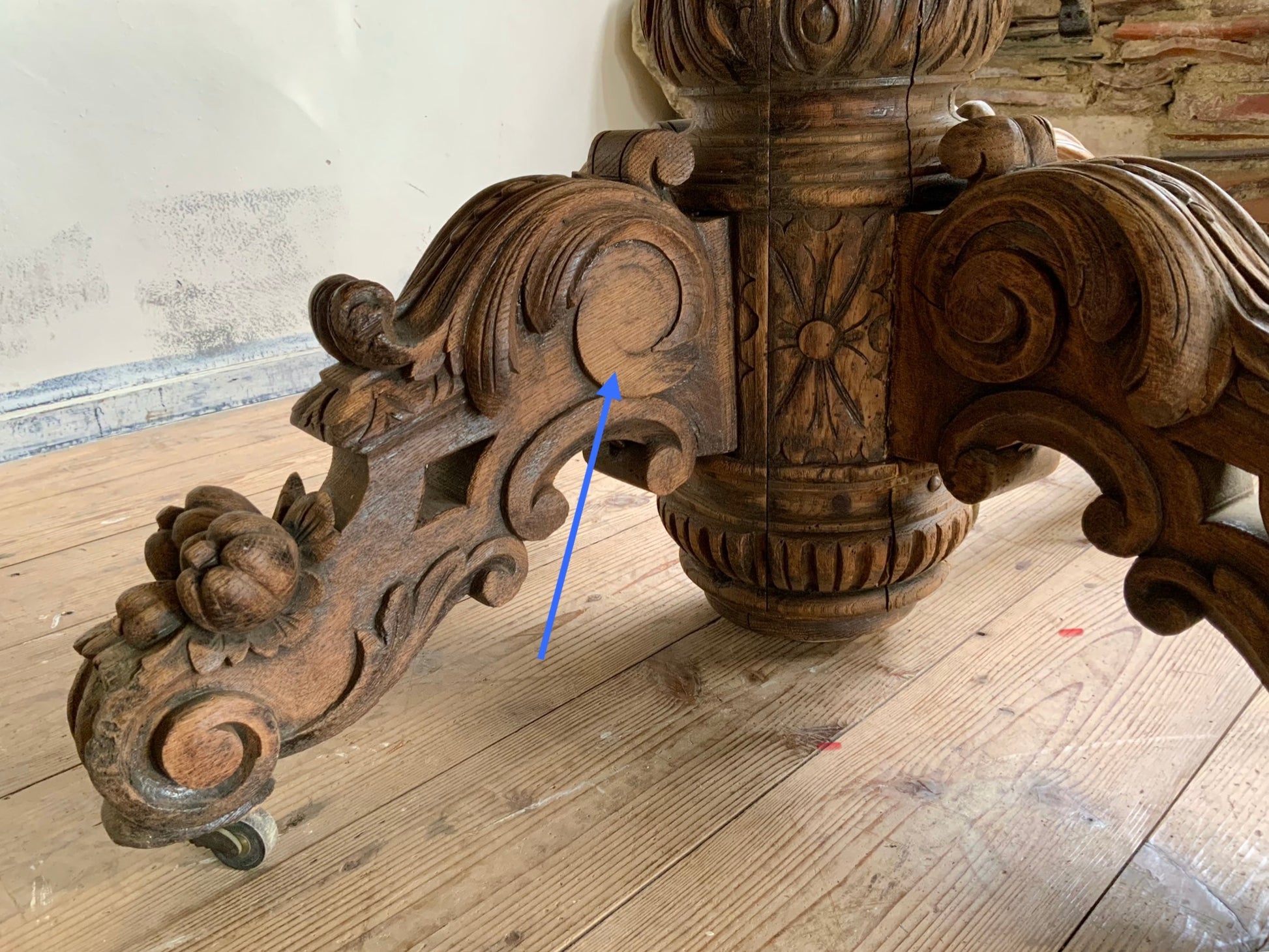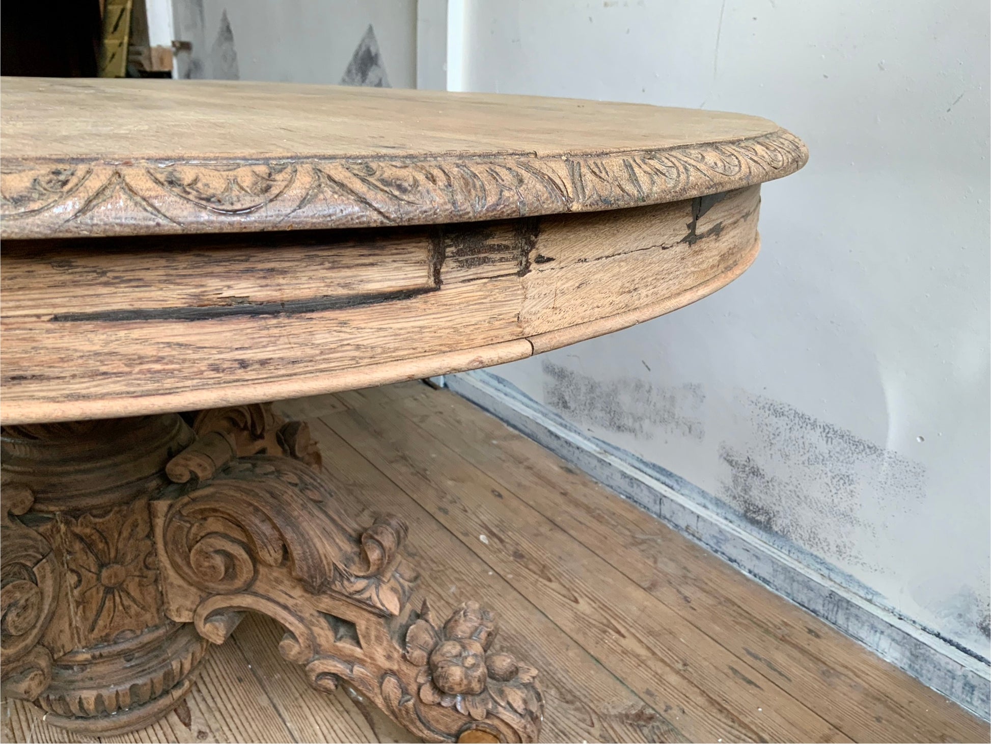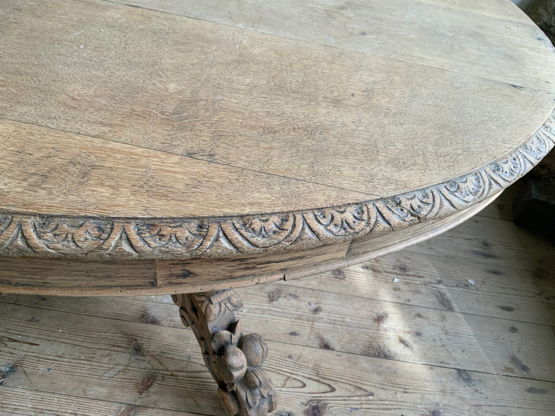 デコラティブなベース脚にオーバルの天板、華やかな雰囲気がフランスらしい一品です。