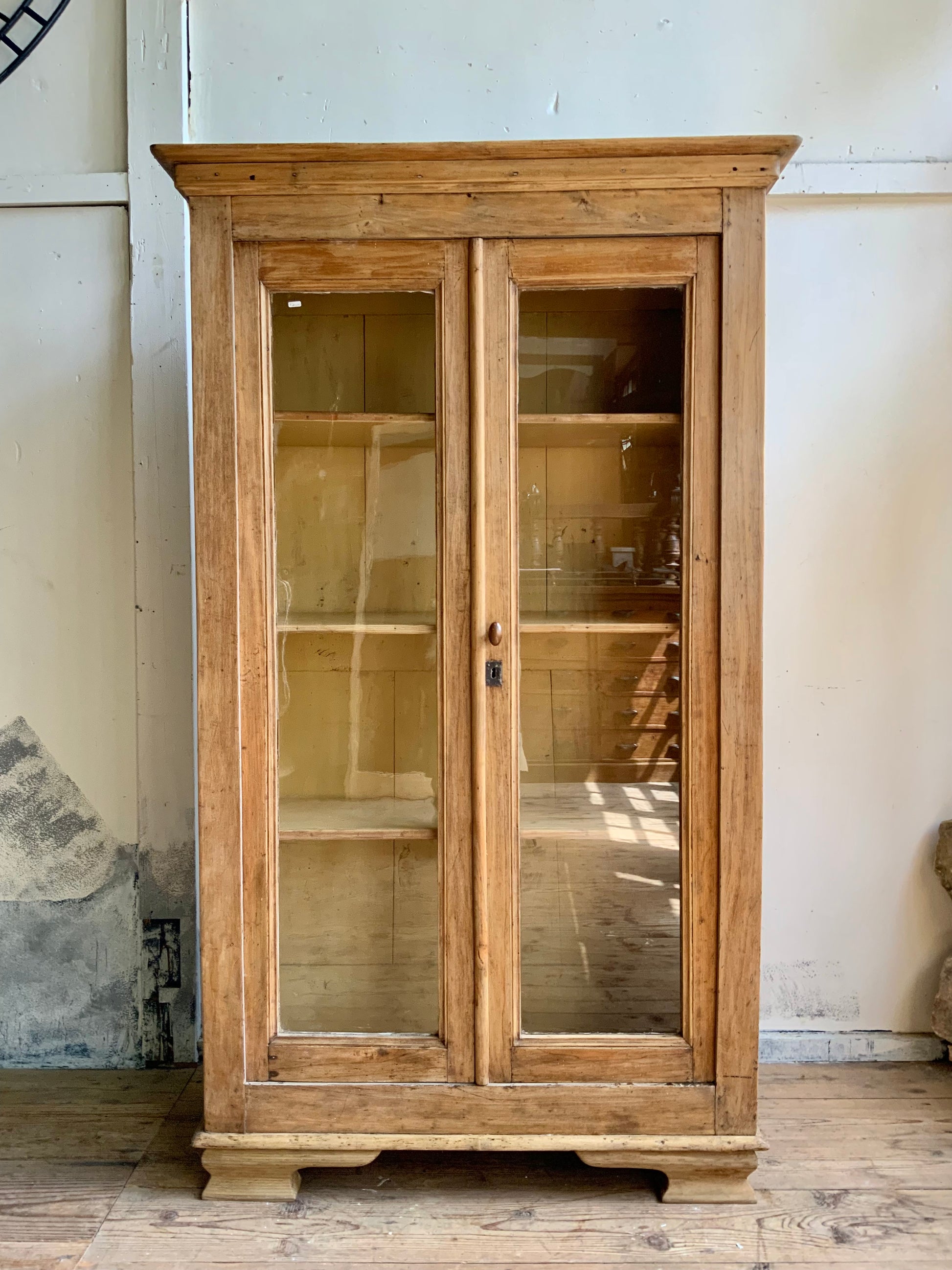 正統派なガラスキャビネット、オールドパインです。