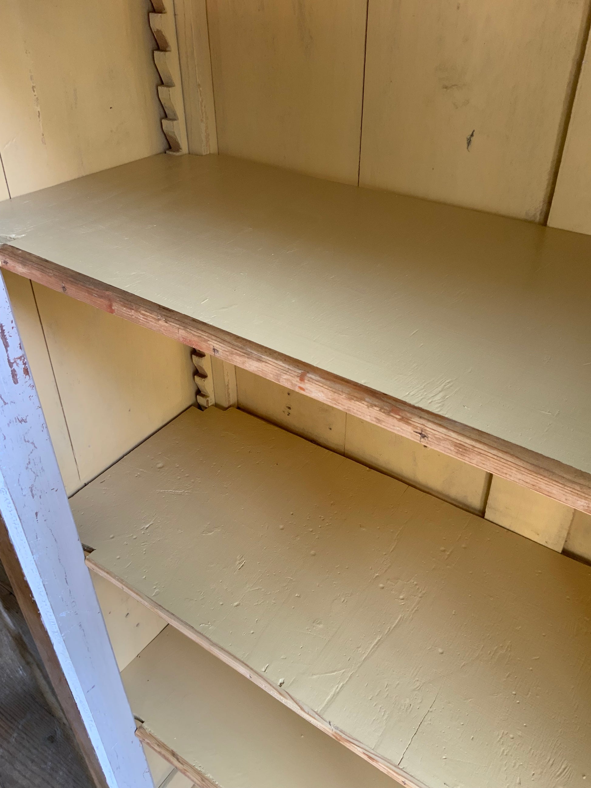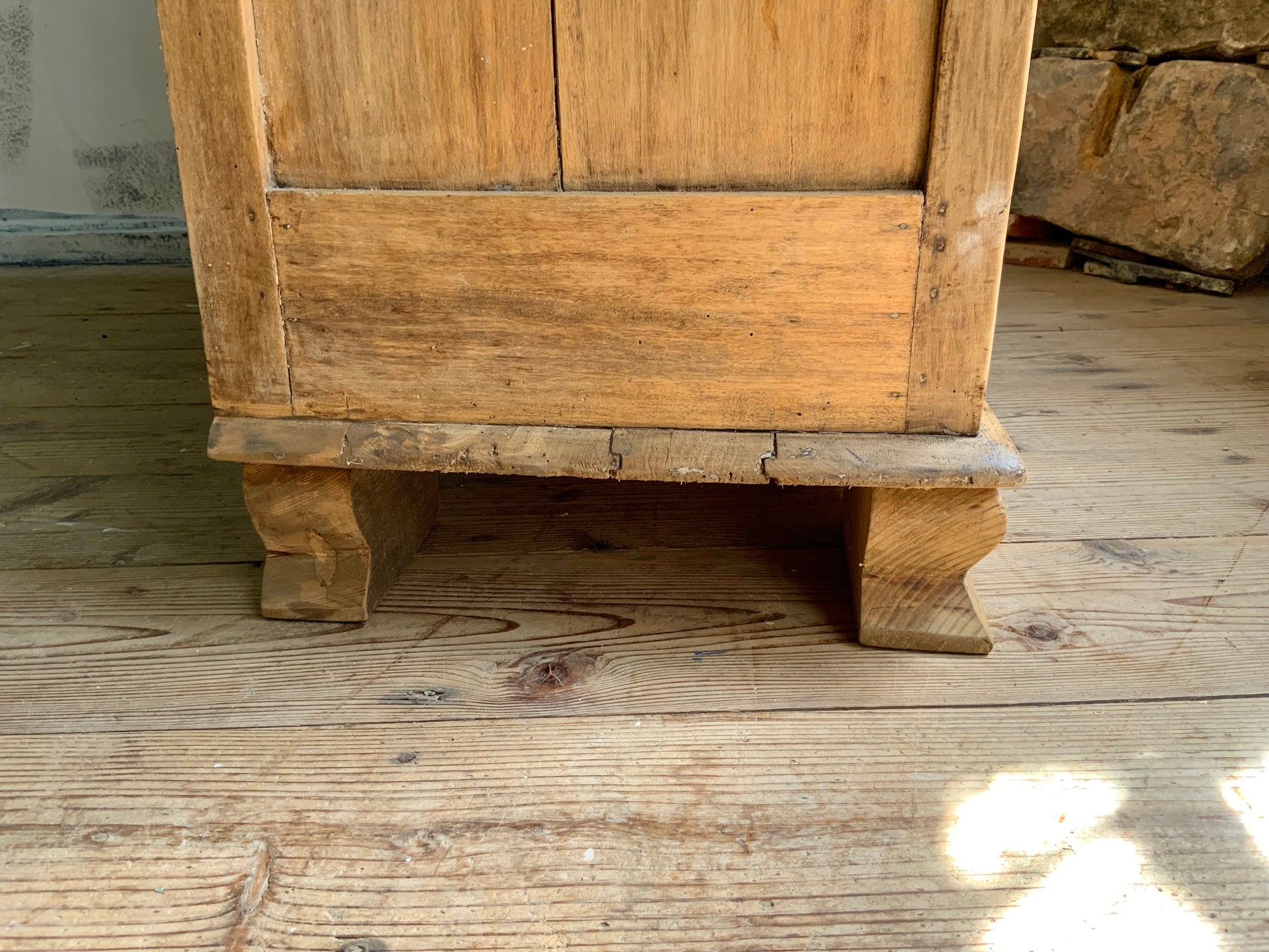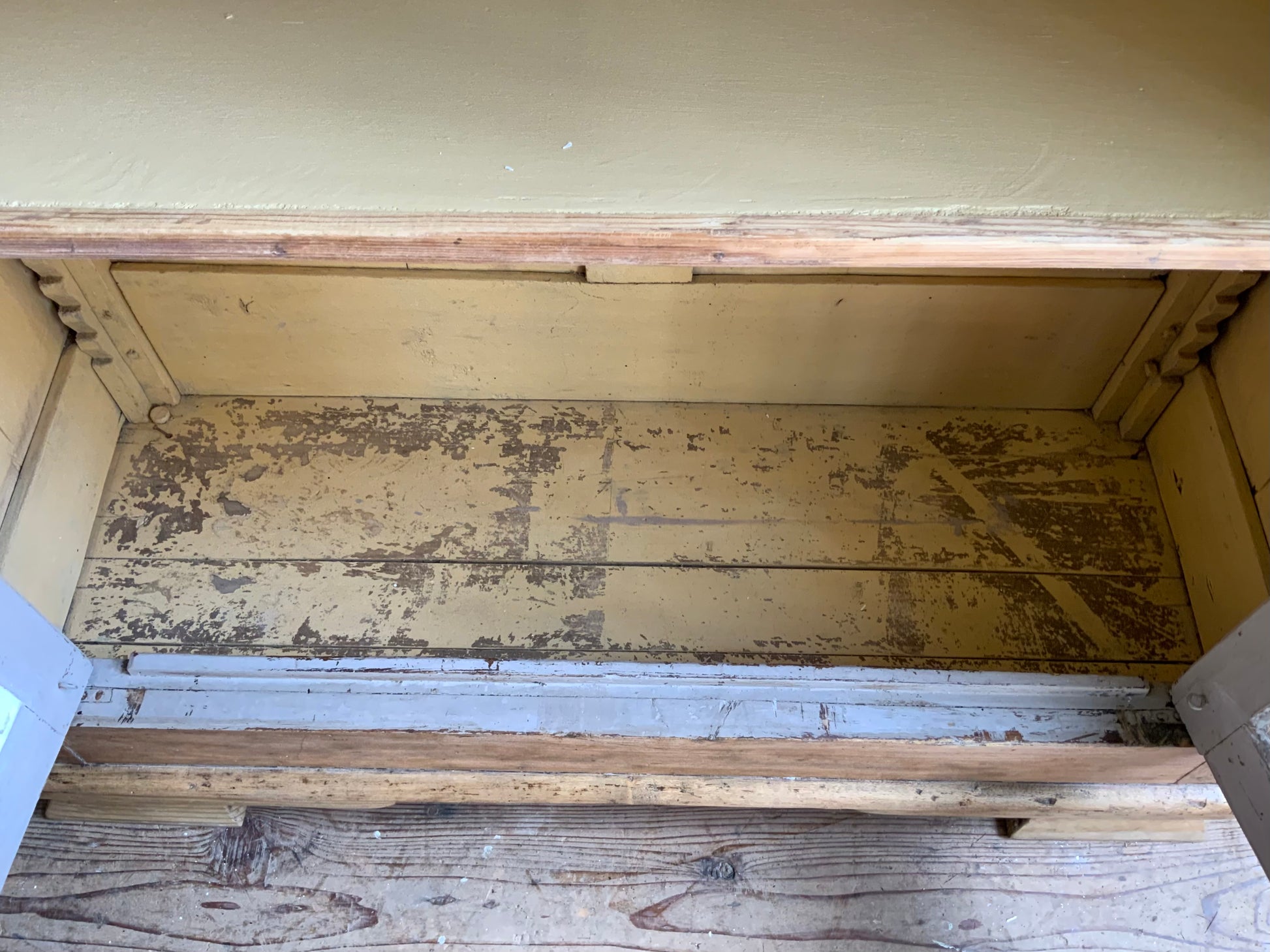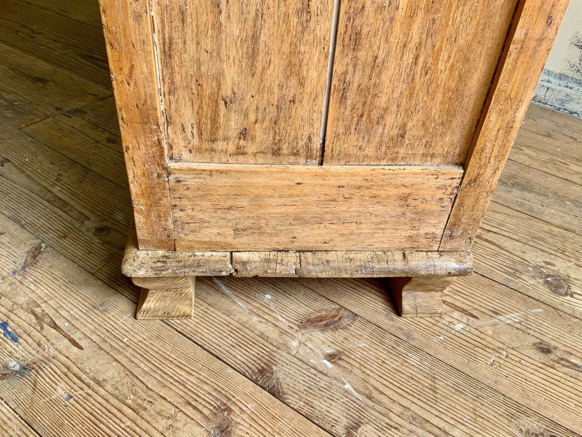 向かって左の天板に少し反りがございます。側面には虫食い跡ございます。詳細写真にてご確認いただけると思います。まだま長くお使いいただける家具です、おすすめです。