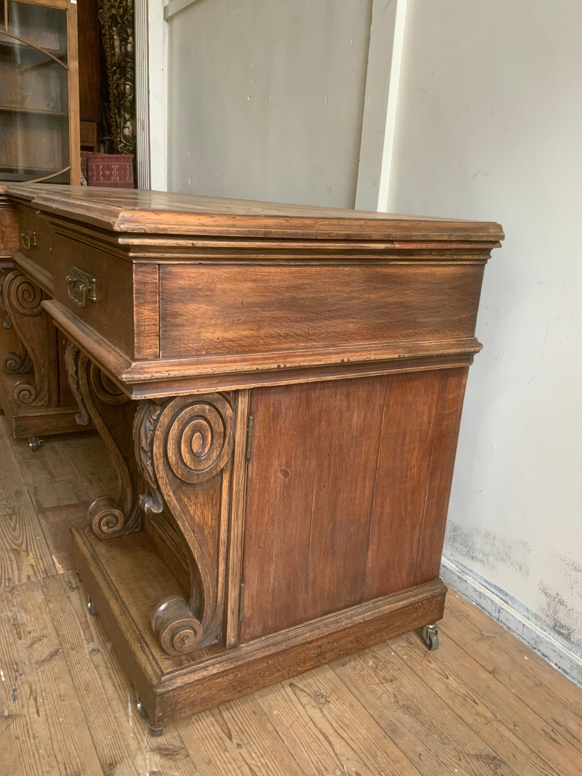 彫刻の美しさと、ボリューム感、主役をはれるサイドボードのご紹介です。