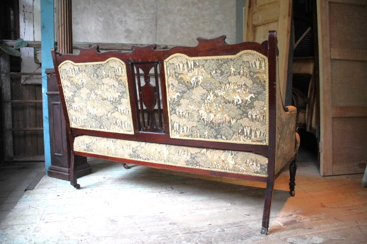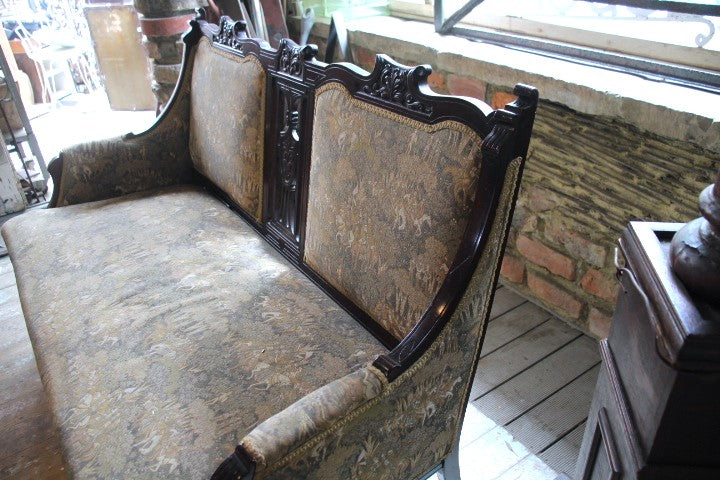 フランスより2seaterソファのご紹介です。 後ろの1か所キャスターがなくなっておりますが、状態は良好。張地もダメージなくきれいな状態です。(お修理は全てのキャスターを外すor似たようなキャスターのとりつけ)