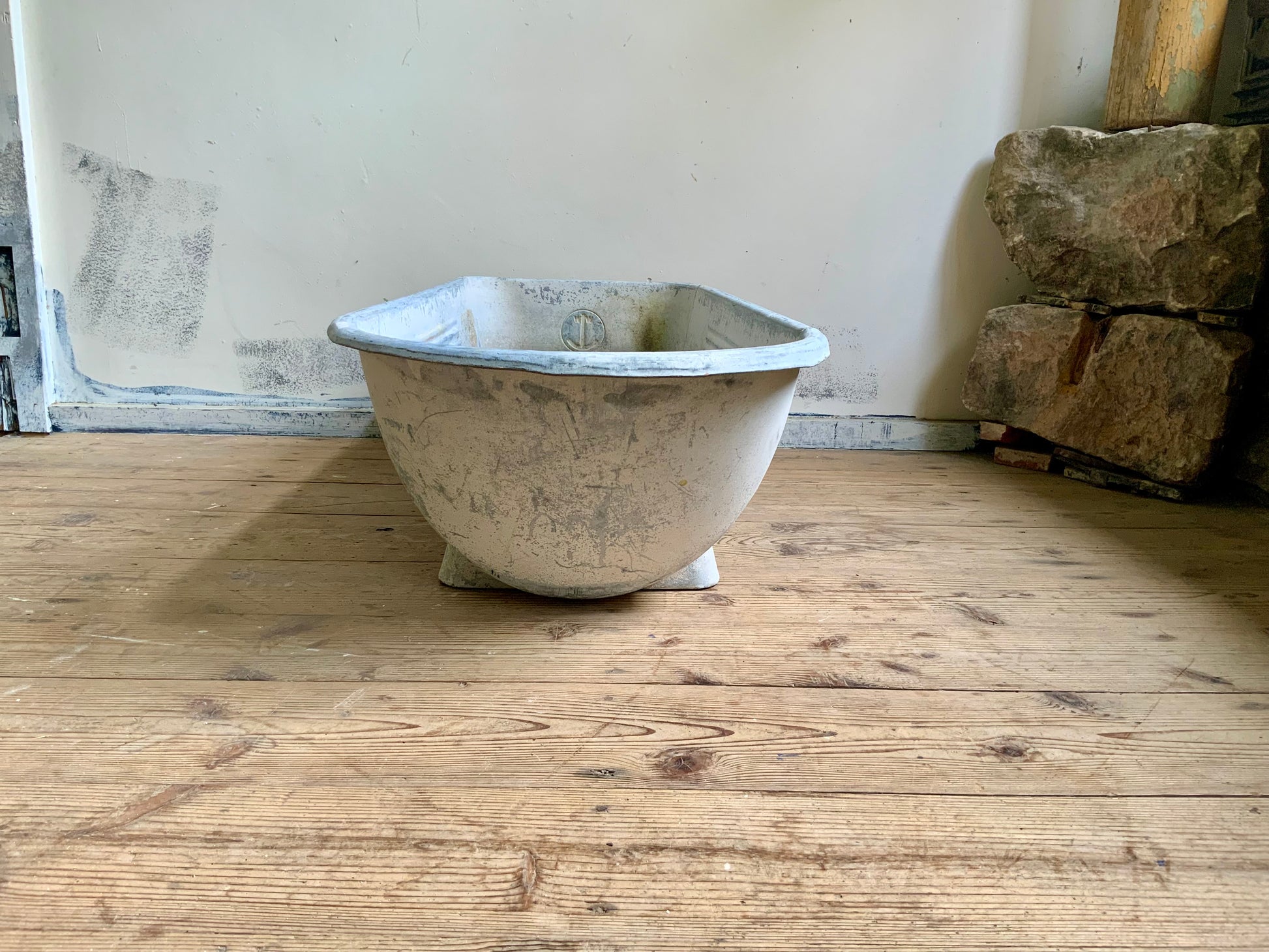 ブリキのベビー用バスタブです。お庭の寄せ植え用ポットとして使われると楽しいポイントに♪ 菜園やガーデニング用の水栓シンクとしてもおすすめです。底に水はけ用の穴があいています。蓋をすることもできますので、お気軽にお問い合わせくださいませ!!