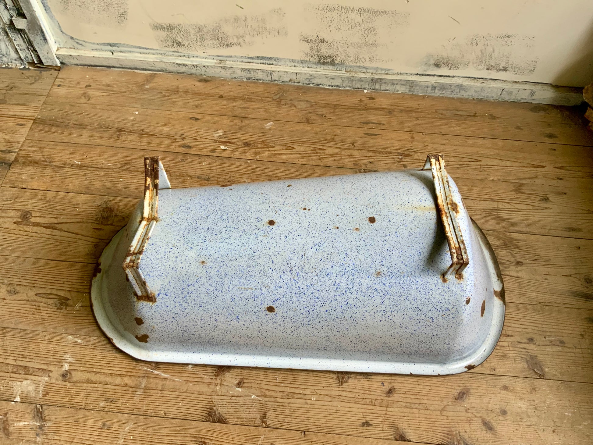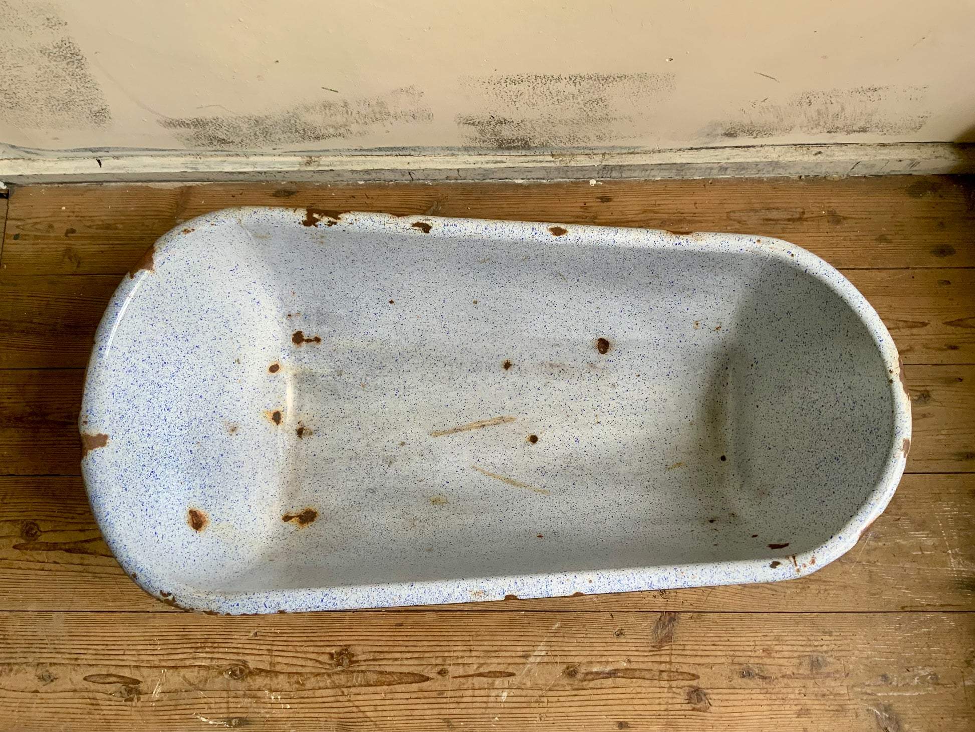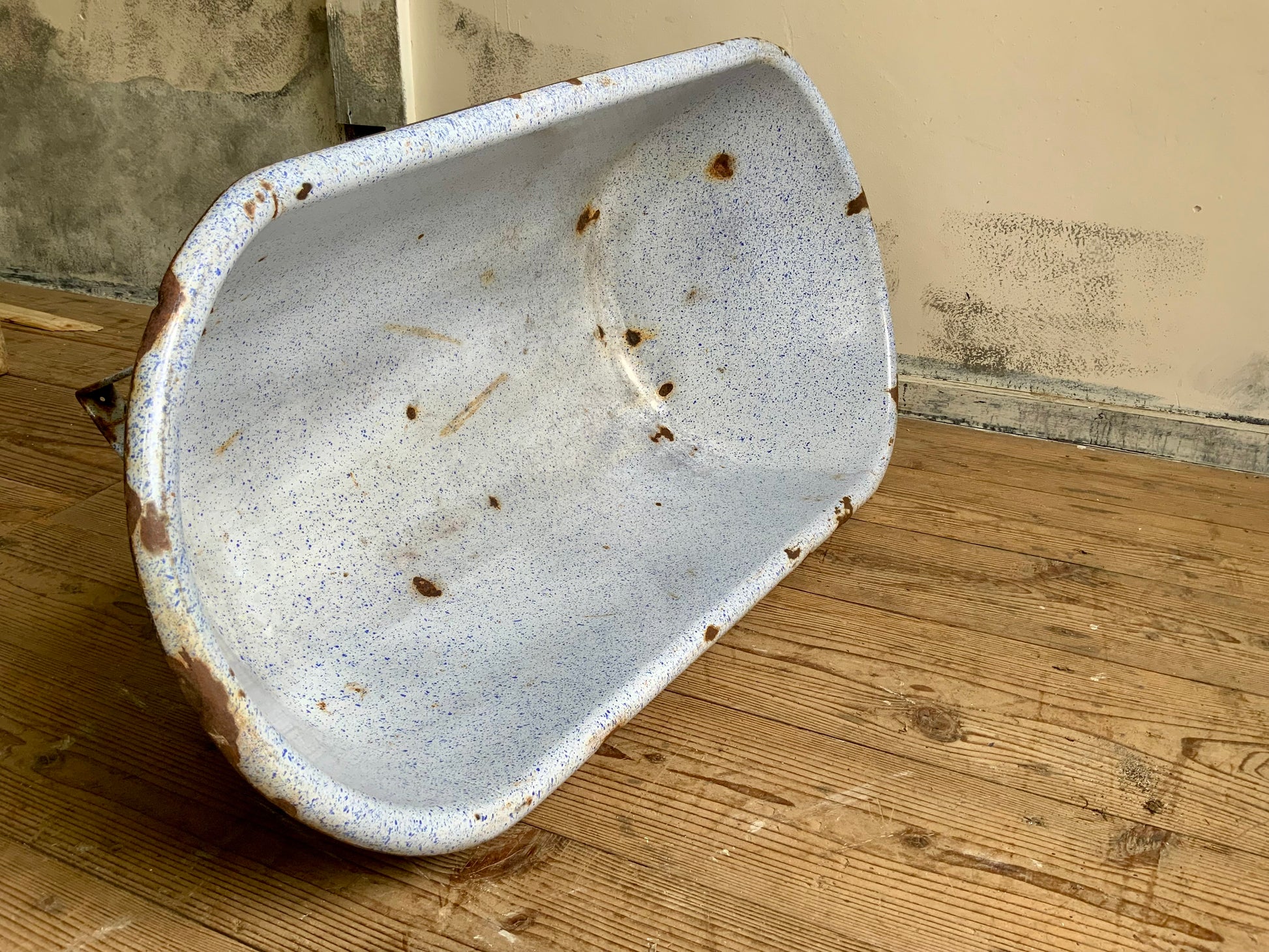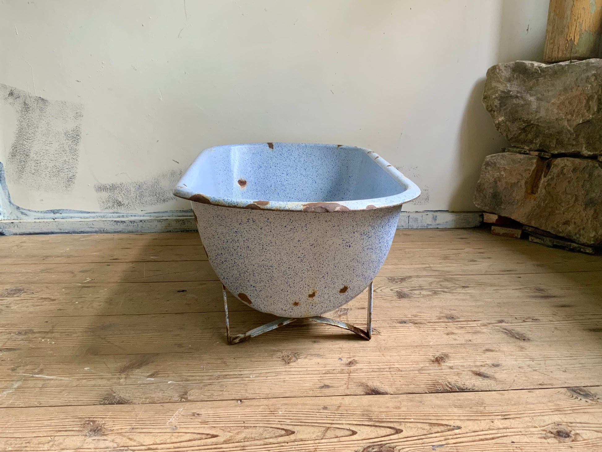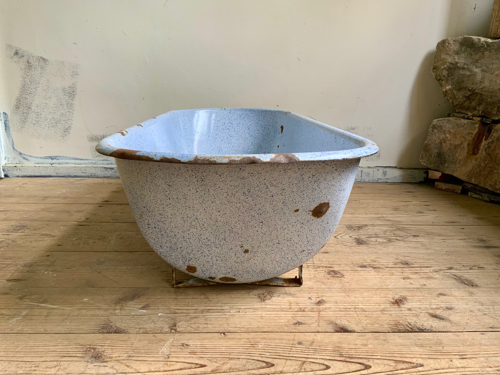 琺瑯製ベビー用バスタブです。お庭の寄せ植え用ポットとして使われると楽しいポイントに♪ 菜園やガーデニング用の水栓シンクとしてもおすすめです。底に水はけ用の穴があいています。蓋をすることもできますので、お気軽にお問い合わせくださいませ!!
