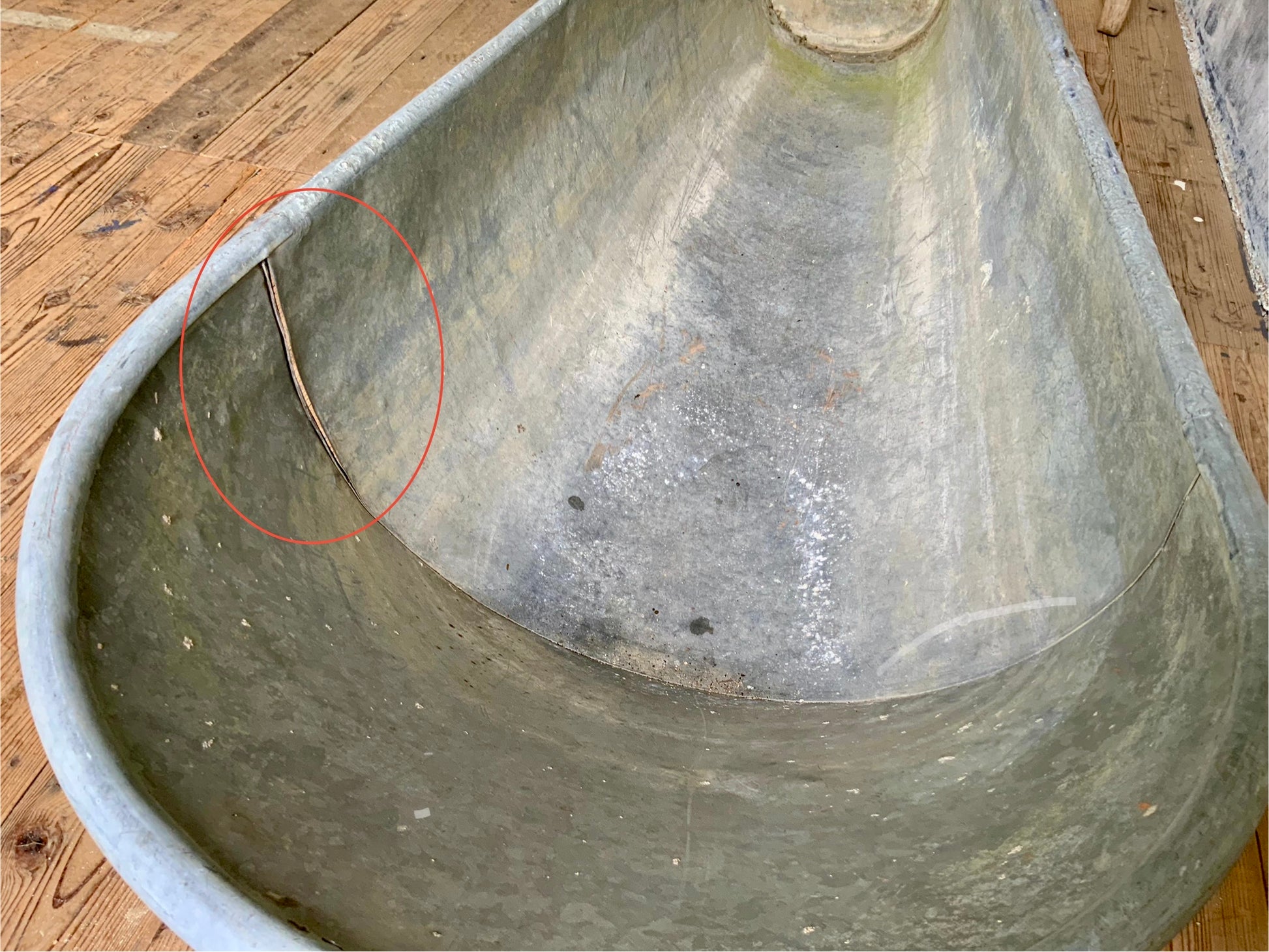 ブリキのbigバスタブ、こちらに寄せ植えをされると存在感抜群です♪shopの看板替わりとなりそうな一品。一部外れているところがありますが、補修後にお届けいたします!